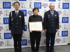 松田女性部副部長は、多年にわたるこども見守り活動等地域の交通事故防止に寄与した功労者として、天童警察署長から感謝状が贈呈されました。